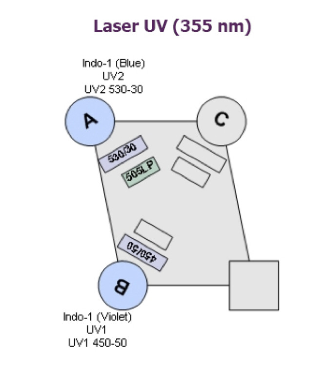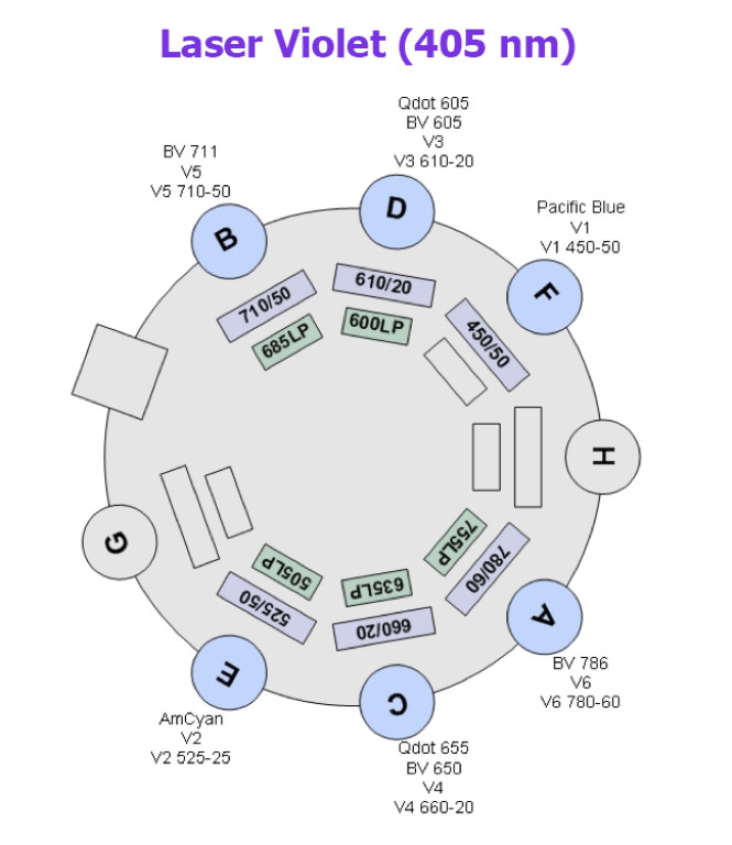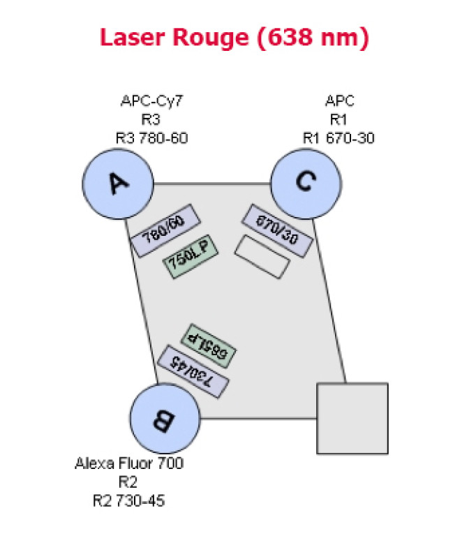 Le banc optique du LSRFortessa de la plateforme CyPS est composé de 5 lasers :