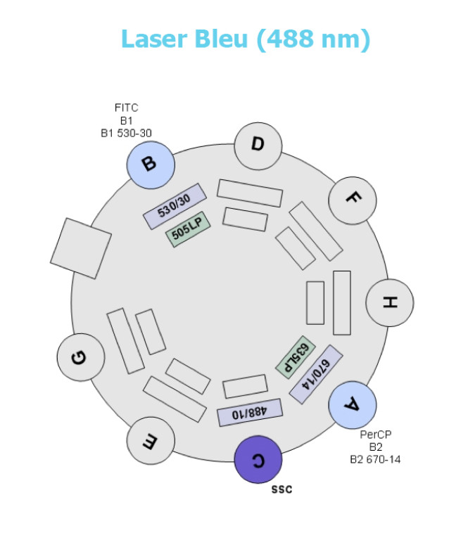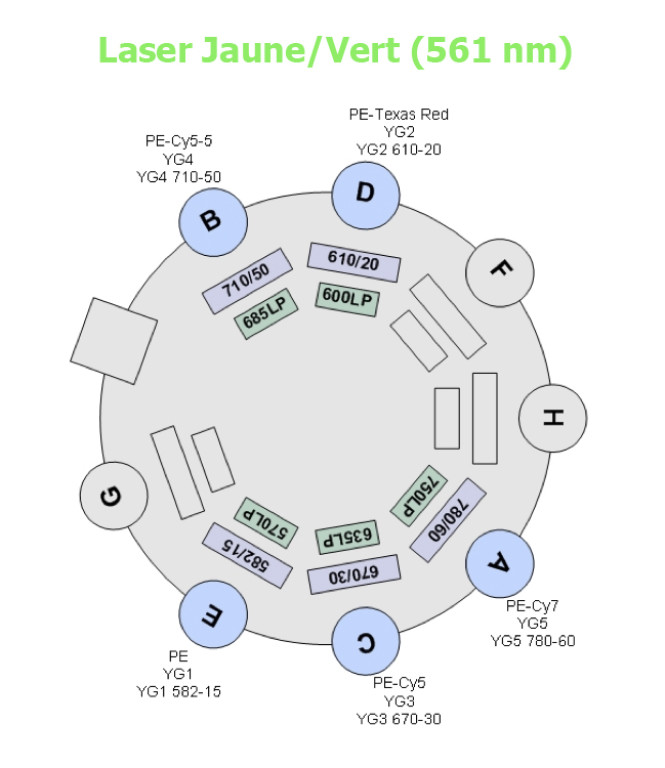 • Laser Jaune/Vert 561nm : 5 détecteurs