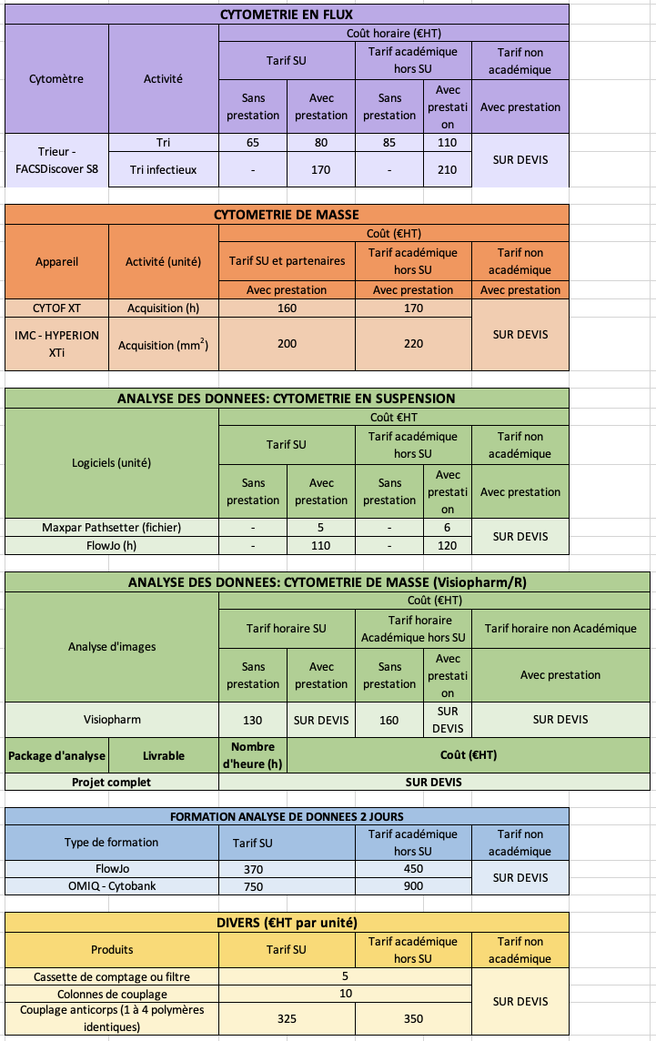 • de votre demande (analyse, tri, clonage, réglages multicouleur, heure d'activité, retraitement des données)
